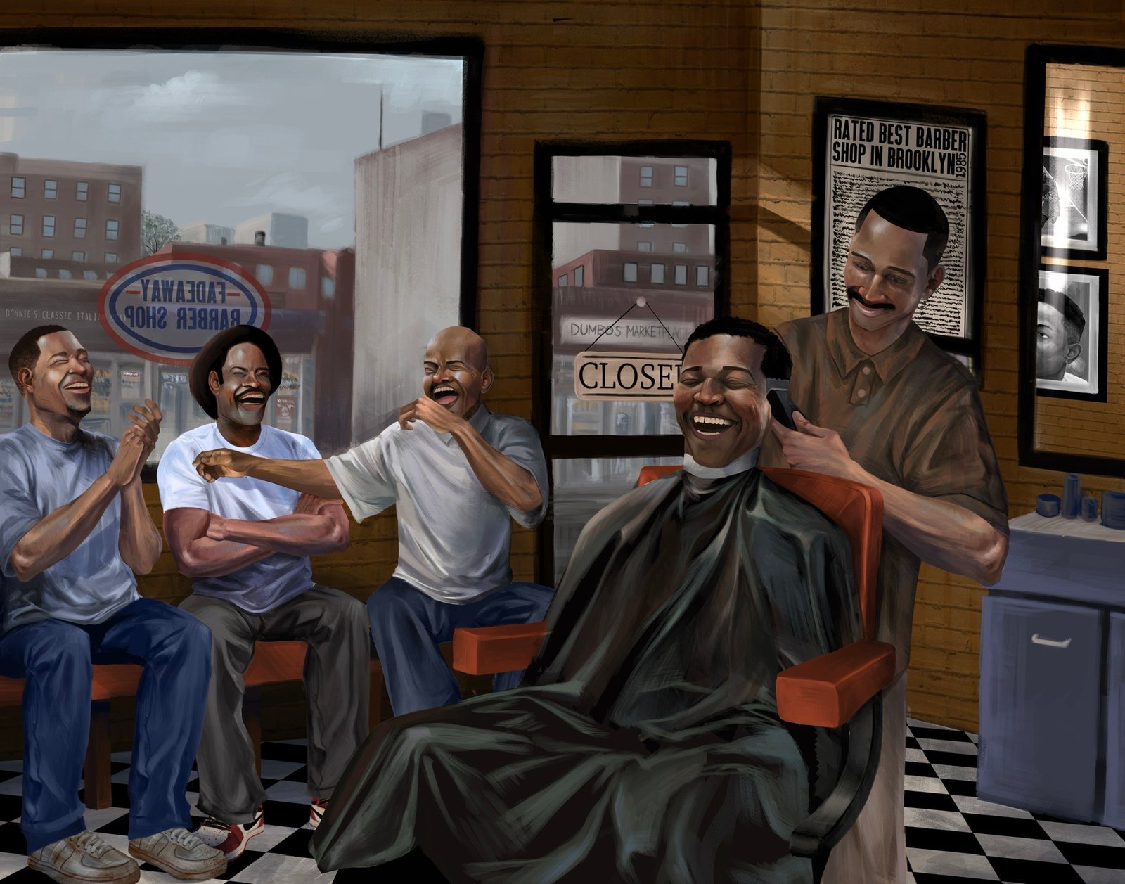 Kenan’s winning piece (Dad, it’s your turn) was won over by our 11-artist adjudication panel. “I painted a father and son playing Monopoly, but the father had passed out. They are poor, as seen with the bills and eviction notice on the table. The father spends all the money on drugs and alcohol. Monopoly is a game centered around having money, a situation that directly opposes that of the father and his son.”
